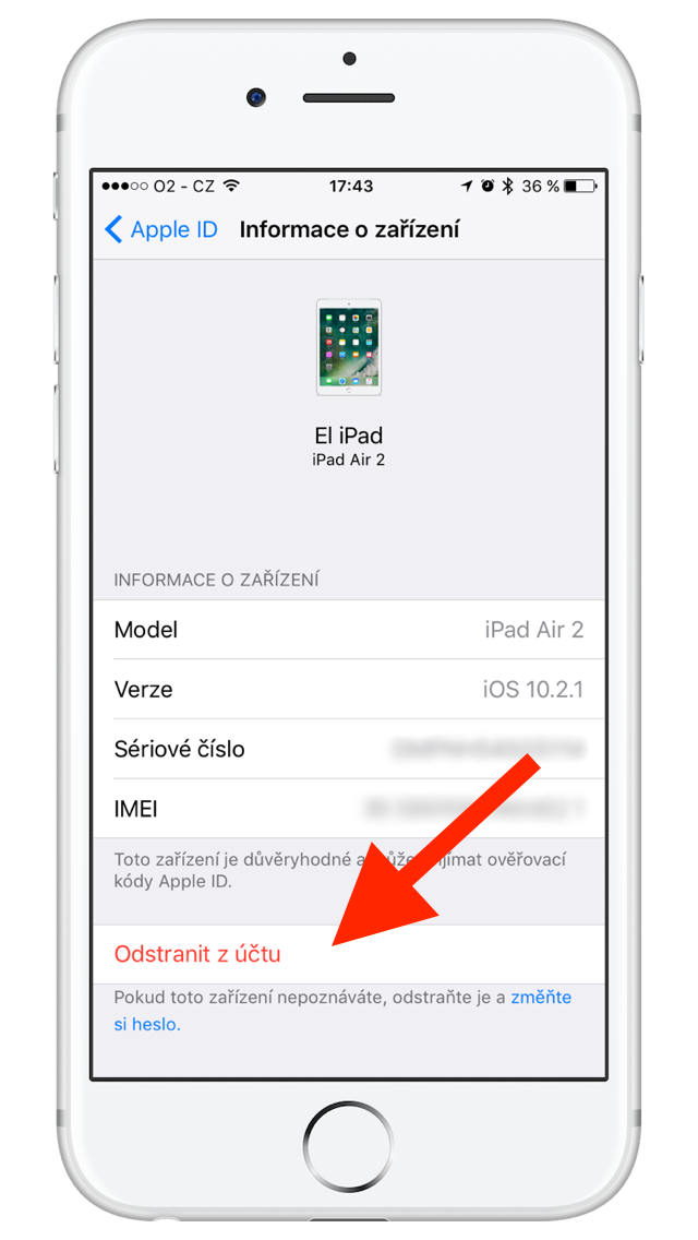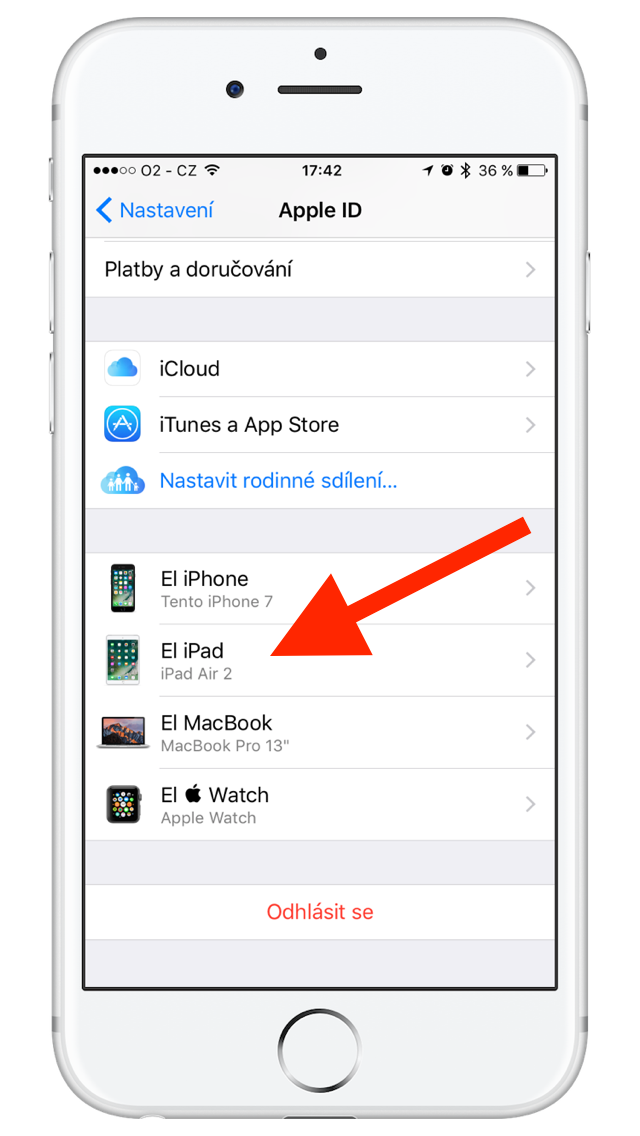Nejprve je třeba otevřít aplikaci Nastavení. Úplně nahoře je karta s přehledem vašeho Apple ID, tu rozevřete. Ve spodní části stránky jsou vypsána všechna zařízení připojená k současnému Apple ID. Pokud je tam nějaké staré, klikněte na něj a zmáčkněte červené tlačítko „Odstranit z účtu“. Nejdříve si dobře překontrolujte, zda mažete opravdu to, co chcete. Je pravděpodobné, že vás Apple požádá o zadání hesla k Apple ID a vyplňení bezpečnostních otázek.