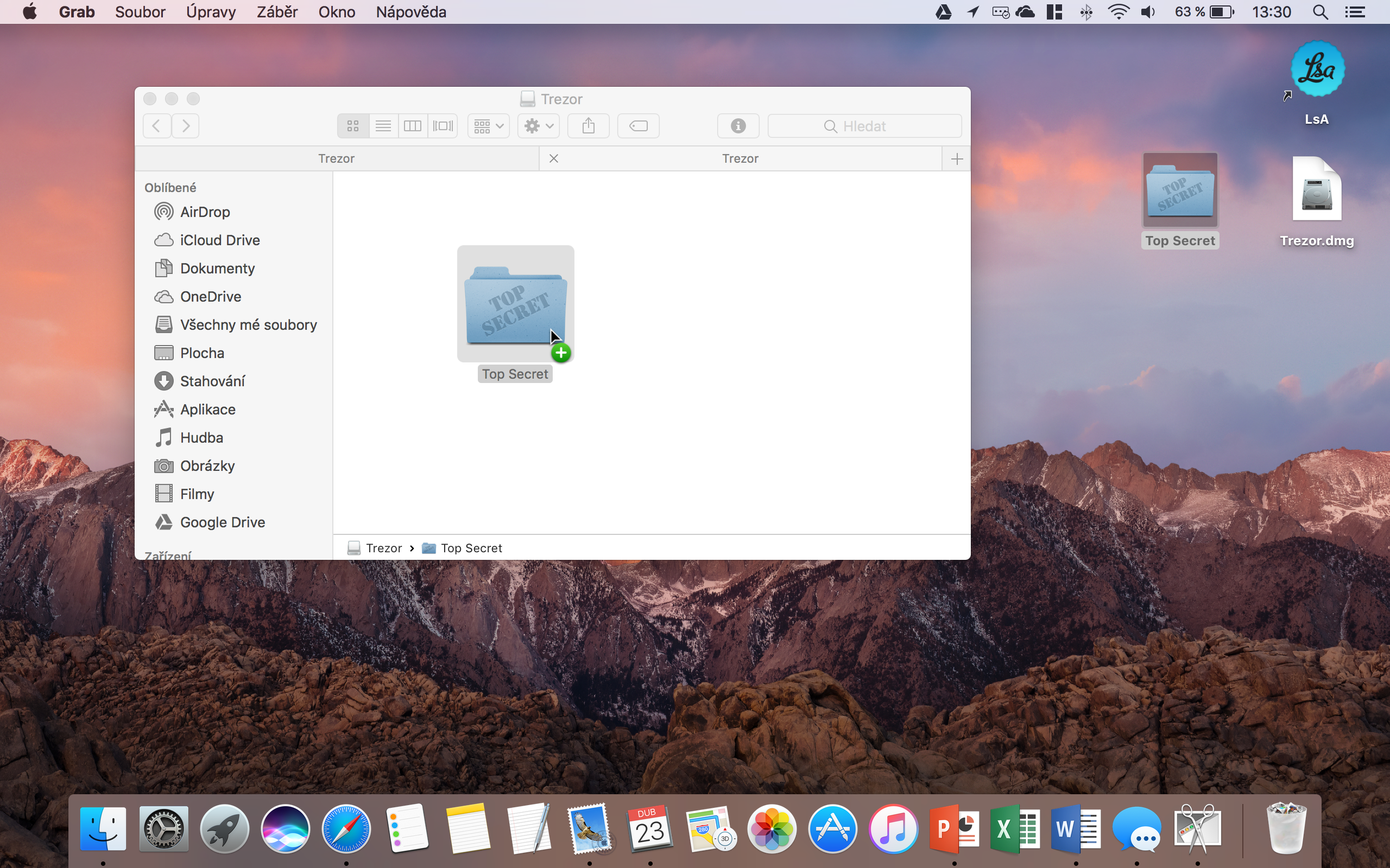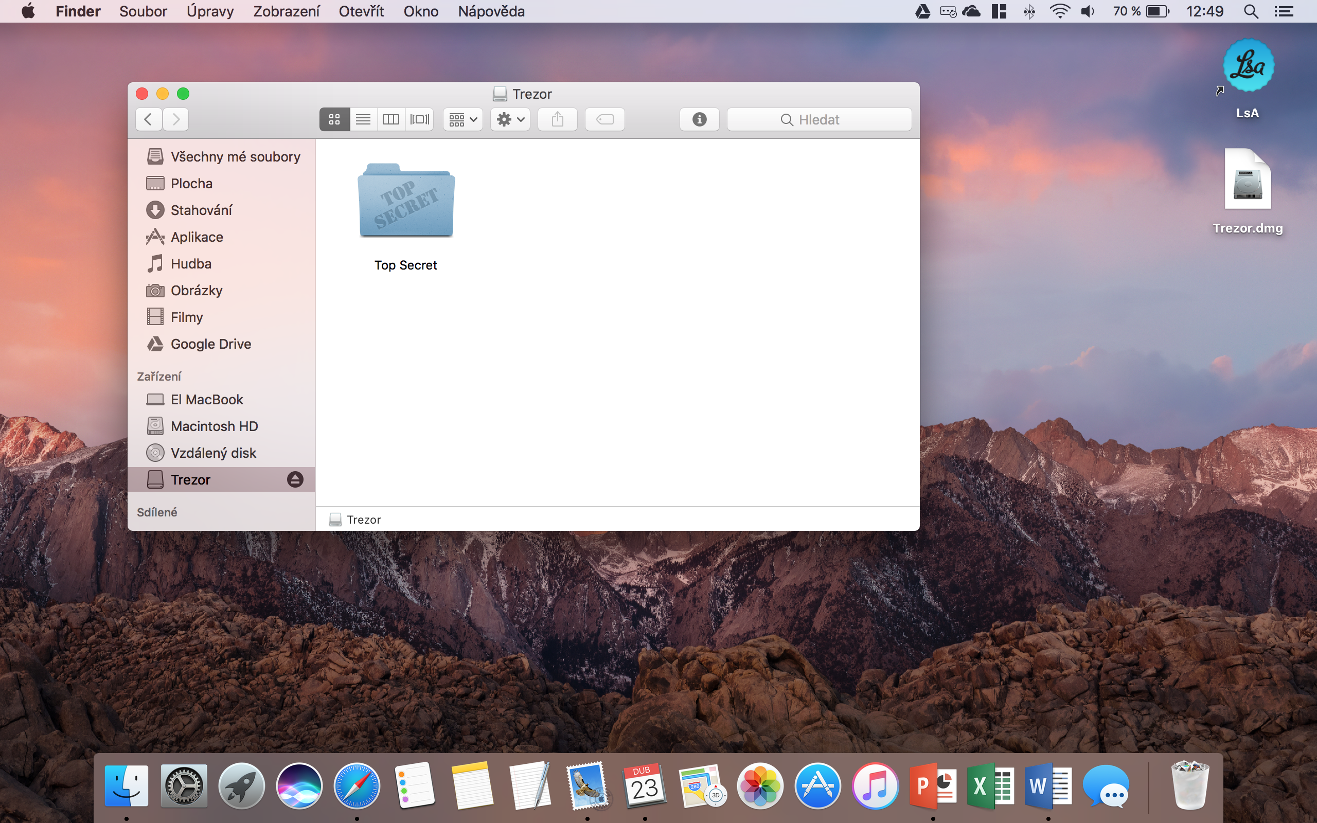 Vznikne soubor s příponou „dmg“, kterým budete trezor vždy odemykat. Ten se bude nacházet na místě, kam jste ho uložili v bodě č. 6. Pro ukládání a prohlížení tajných souborů využijete složku, která se vám po zadání hesla objeví v postranní liště Finderu pod kategorií „Zařízení“. Jakmile chcete trezor uzamknout, klikněte u té stejné složky na symbol ⏏ (vysunout). Pokud budete potřebovat celý trezor smazat, jednoduše soubor dmg vhoďte do koše.