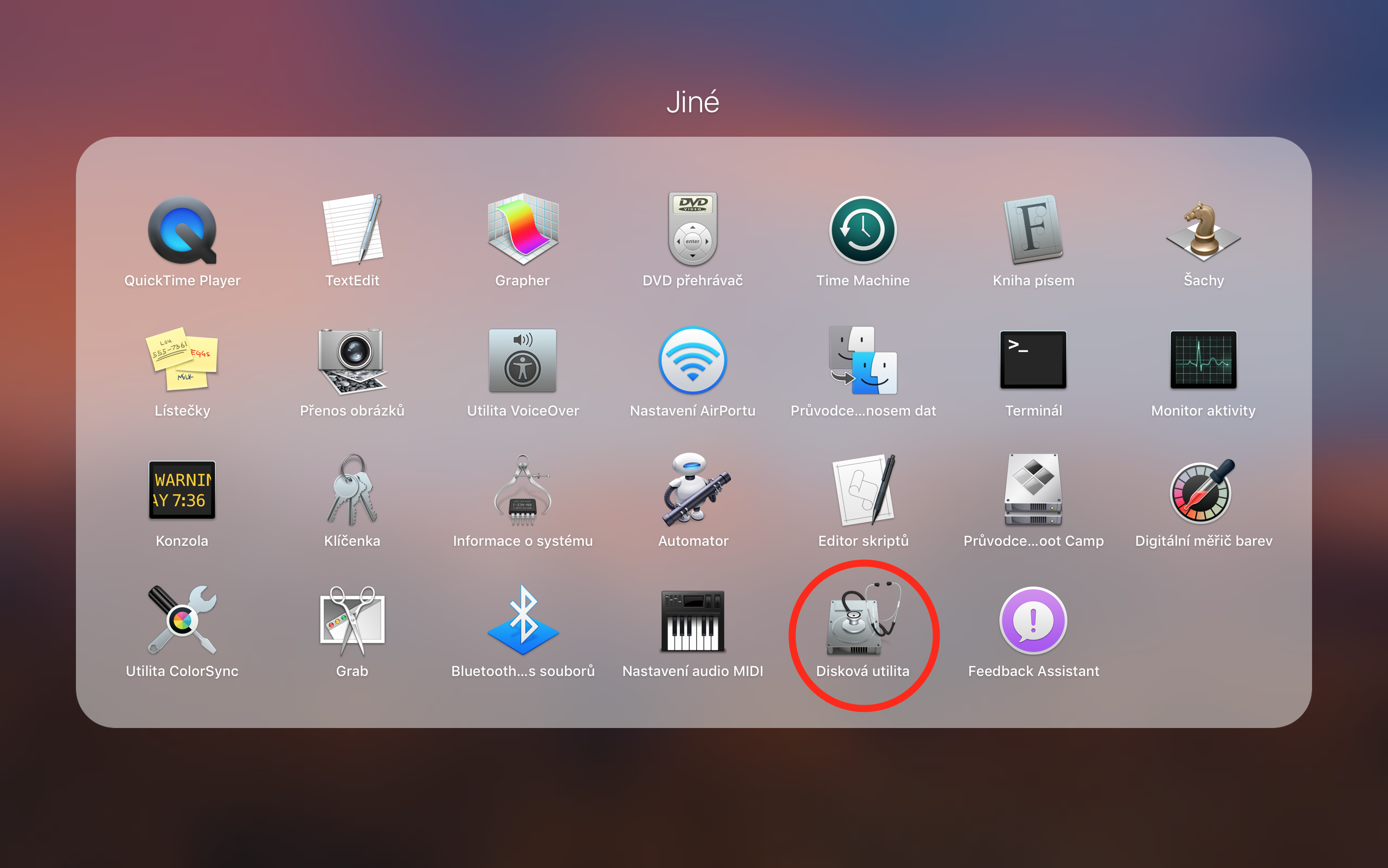 - V Launchpadu najdete složku Jiné, v ní bude Disková utilita.