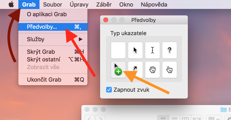 Vyfocení snímku obrazovky s kurzorem je sice o malinko složitější ale rozhodně to není nic náročného. Je k tomu za potřebí aplikace Grab, které je součástí každého macOS.