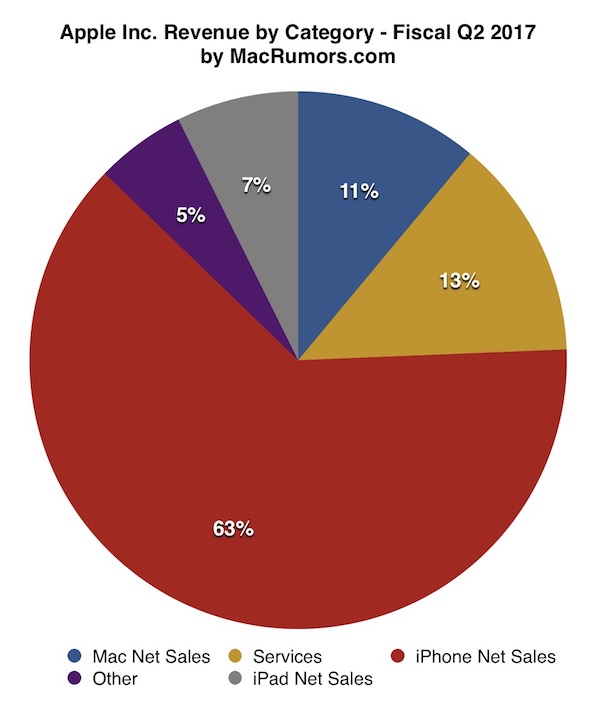 Apple před malou chvílí oznámil finanční výsledky za druhé fiskální čtvrtletí letošního roku, tedy za Q2 2017. Společnost dosáhla za první kalendářní kvartál letošního roku (od začátku ledna do konce března), což znamená za druhý fiskální (finanční) kvartál tržeb ve výši 52,9 miliard dolarů s čistým ziskem 11 miliard dolarů nebo také 2,10 dolarů na jednu akcii. Pro porovnání za stejné období v loňském roce dokázal Apple vygenerovat tržby ve výši 50,6 miliard amerických dolarů s čistým ziskem ve výši 10,5 miliard dolarů, tedy 1,90 dolarů na jednu akcii. Applu tak opět meziročně stouply tržby a čistý zisk