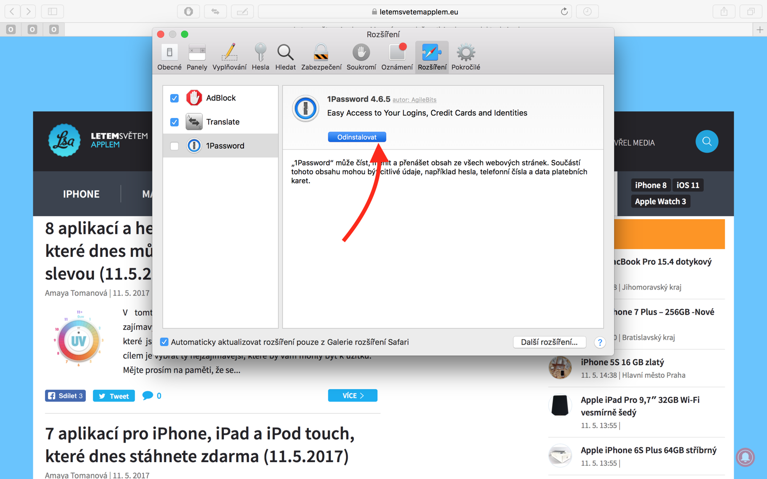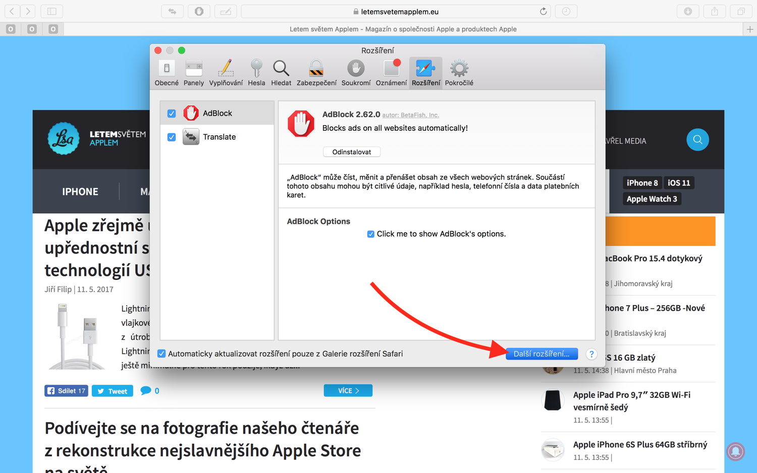 Instalace rozšíření do Safari