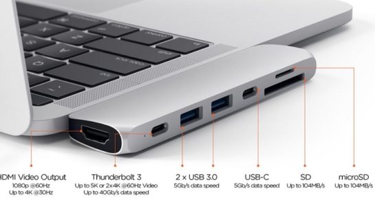Nový HUB od společnosti Satechi je samozřejmě kompatibilní s oběma modely MacBook Pro. Rozšířit si jím tak můžete jak verzi 13“, tak i větší 15“. Protože se tato nová vychytávka zapojuje hned přes dva USB-C porty, nabízí opravu hodně uživatelských možností. Nalezneme v něm porty pro HDMI, Thunderbolt 3, dva porty pro standardní USB 3.0, jeden port pro USB-C a dále sloty pro SD a microSD karty.
