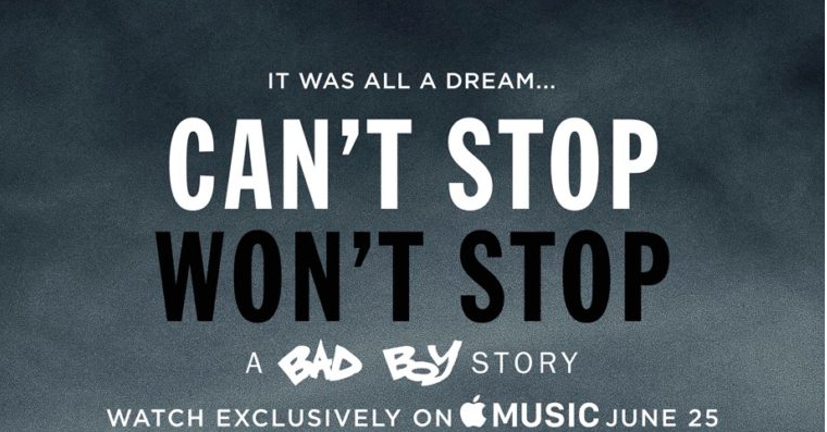 Apple dnes sdílel první trailer na Can’t Stop Won’t Stop: A Bad Boy Story, což bude dokument, který se objeví exkluzivně na Apple Music. V dokumentu bude vyobrazen vzestup Seana Combse (známý jako Puff Daddy/Diddy) a jeho nahrávacího labelu Bad Boy z poloviny devadesátých let, přičemž bude zahrnuto i turné z roku 2016 při příležitosti 20. výročí.