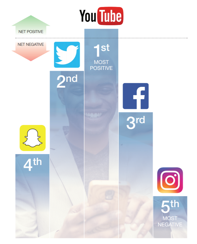 Zajímá vás, která z pětice zkoumaných sítí je „nejzdravější“? Samozřejmě YouTube. Asi nikoho moc nepřekvapí, že je právě tento web šířící různou videotvorbu za něco, co ve člověku dokáže utvářet identitu a pomoci mu budovat různé komunity. Navíc se zde jedinec může skvěle seberealizovat a sebevyjádřit, videa jsou totiž v tomto ohledu určitě nelehčí a nejdostupnější možností. Obecně zažívá tato platforma v posledních letech vcelku solidní boom a ukazuje, že i přes ni se dá vytvořit solidní kariéra.