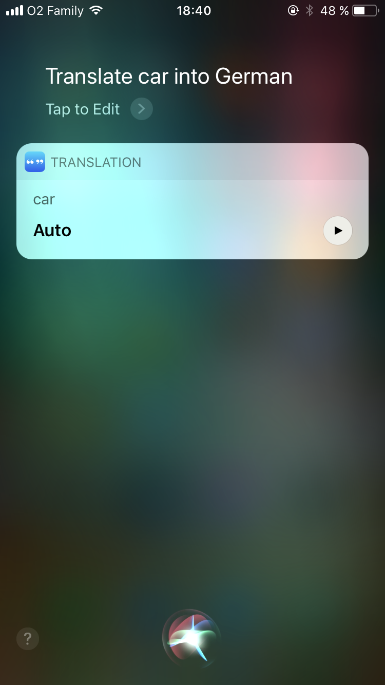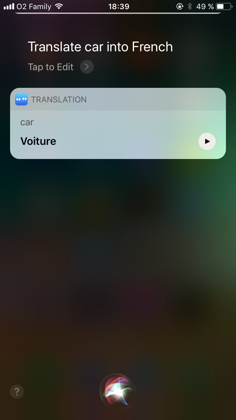 Siri bohužel není v ČR až tak oblíbená jako v zemích, kde mluví stejným jazykem jako jejich obyvatelé. Pokud však umíte dobře anglicky, můžete i vy začít používat Siri jako překladatelku. Stačí se jí totiž zeptat jak se například francouzsky řekne „auto“ a ona vám okamžitě odpoví a navíc máte možnost si nechat přehrát i výslovnost daného slovíčka.
