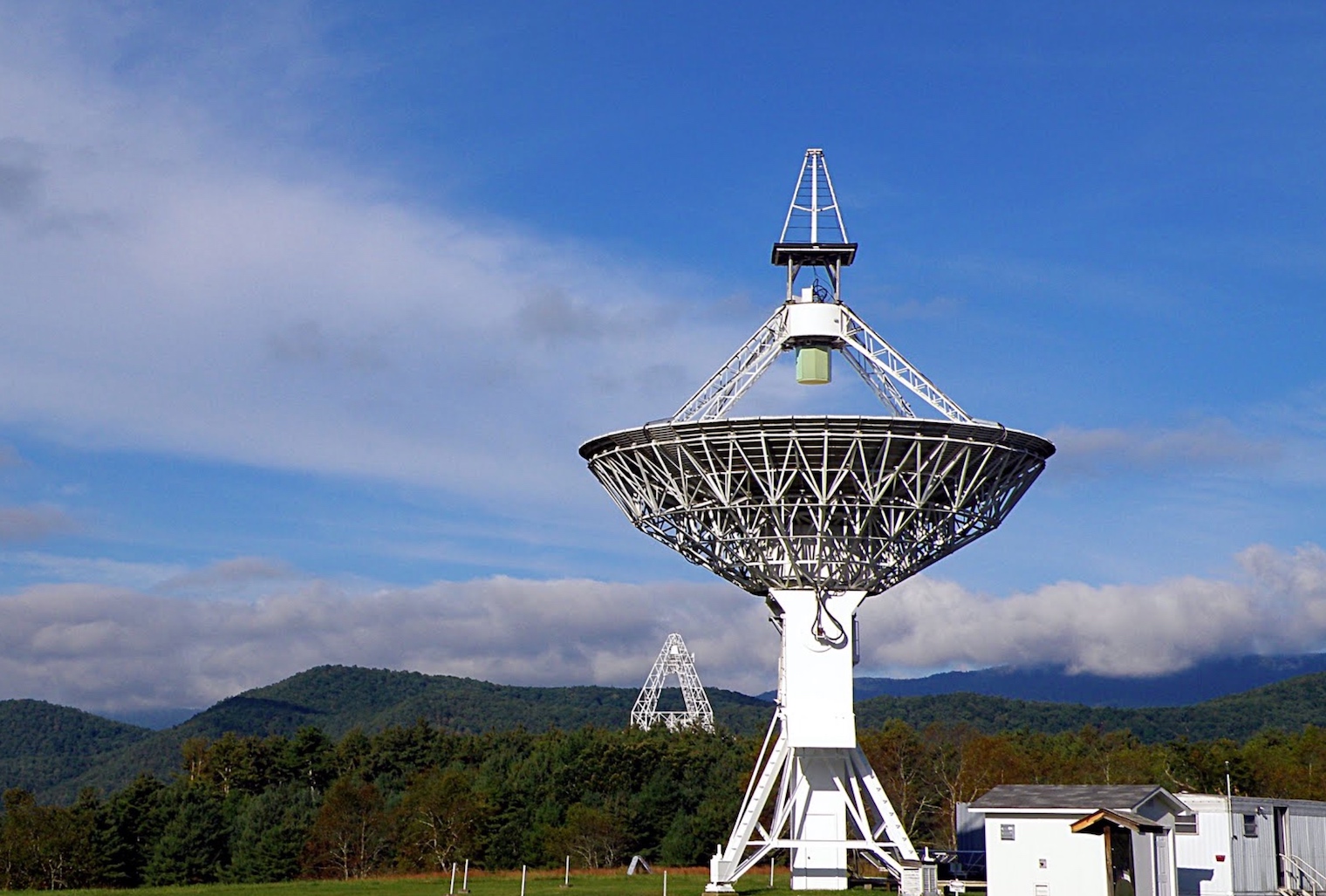 Green Bank totiž obklopuje takzvaná Národní tichá zóna, ve které nejsou žádná rušivá zařízení včetně mobilních telefonů, rádii, mikrovlnných trub a zkrátka všeho co vydává elektromagnetický smog nebo jakýkoli signál. Ten by totiž mohl rušit Národní observatoř pro rozhlasovou astronomii NRAO, která vlastní největší rádiový dalekohled na světě, který můžete vidět na fotografii níže. Rádiový dalekohled zachycuje rádiové signály z vesmíru a snaží se pátrat po mimozemském životě.