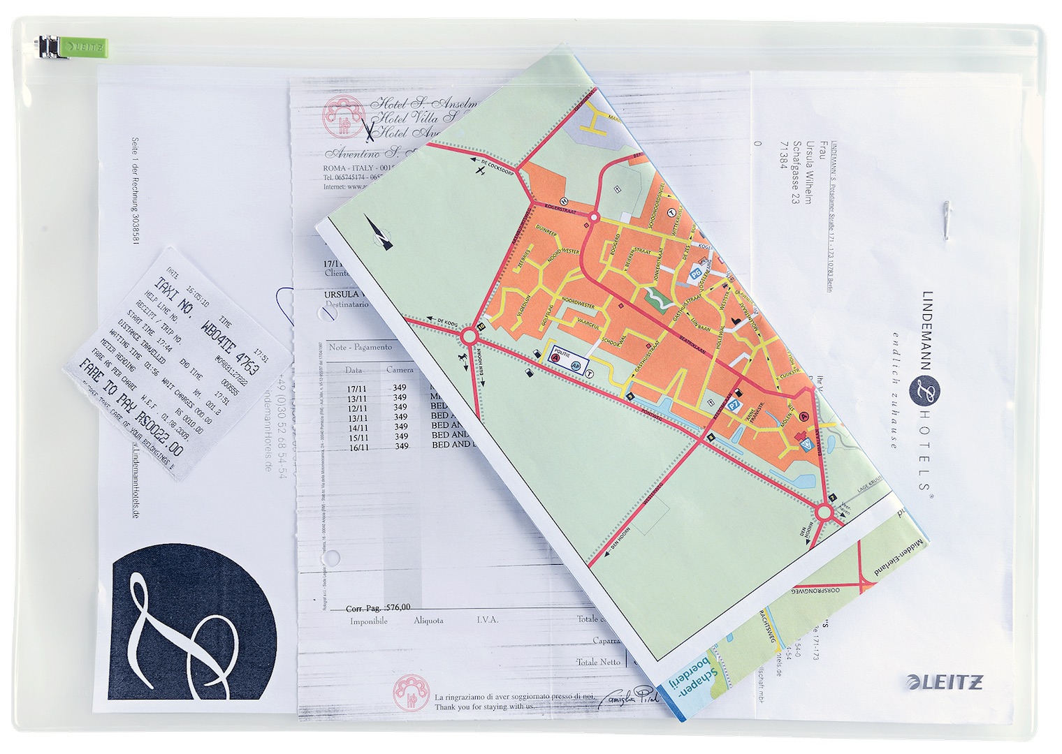 • Uložte si letenky, lístky, účtenky a ostatní dokumenty na jednom místě. Ty digitální můžete mít v telefonu, na ty tištěné použ te třeba Kapsy na zip Leitz Complete.