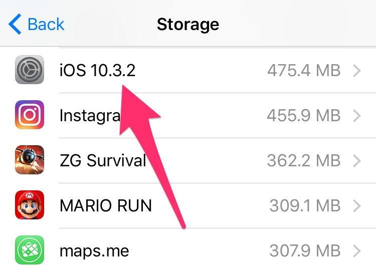 - Zde vidíte souhrn informací o úložišti vašeho zařízení. Vidíte též seznam nainstalovaných aplikací a jejích velikost. V tomto seznamu se bude nacházet i položka stažené aktualizace softwaru – např. iOS 10.3.2.