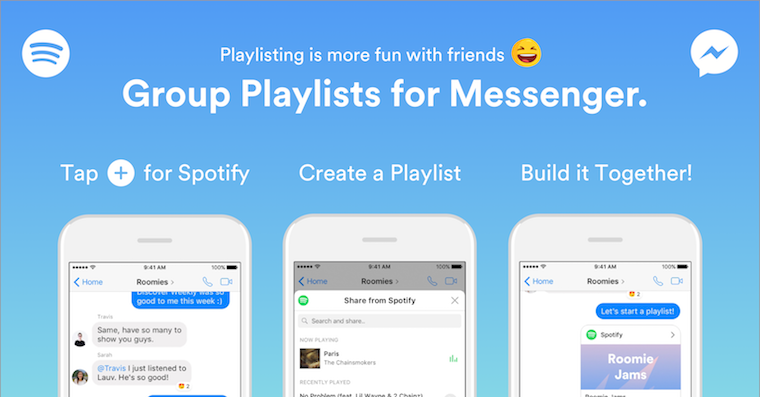 Nejpopulárnější streamovací služba Spotify dnes představila novou funkci skupinových playlistů pro Messenger od Facebooku. Novinka uživatelům umožňuje vytvářet mixy skladeb přímo ve skupinové konverzaci, odkud si je mohou pouštět její další členové.