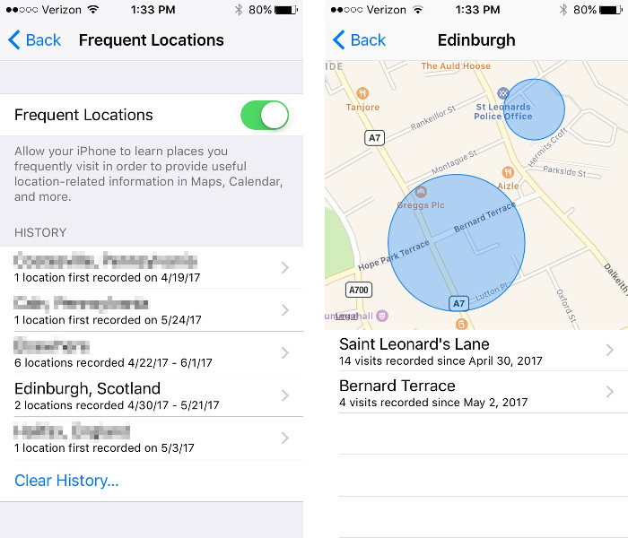 Začněme něčím, co příliš nepřekvapí. Navzdory tomu se kvůli této funkcionalitě strhl před pár lety poprask. Vyšlo totiž najevo, že iPhone sestavuje seznam míst, na nichž se vyskytuje nejčastěji, a vylepšuje tak svoje mapy. Řadu majitelů jablečného smartphonu to znepokojilo, ale Apple jejich hlasy nevyslyšel a služba tak zůstává i v iOS 11.