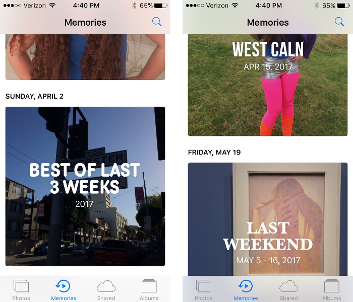 Vzpomínáte si, jaké fotky jste si s kamarádem nebo kýmkoliv jiným vyměňovali před půl rokem? Pokud ne, pak vězte, že iPhone ano. Stačí kliknout na ikonku „i“ napravo od jména kontaktu a můžete se prodírat všemi fotkami nebo videi, jež jste dotyčnému kdy poslali.