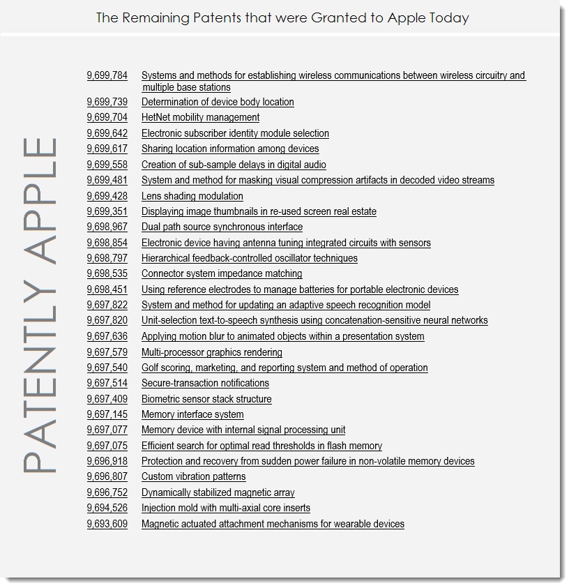 Podívejte se na seznam patentů, které Apple dnes získal: