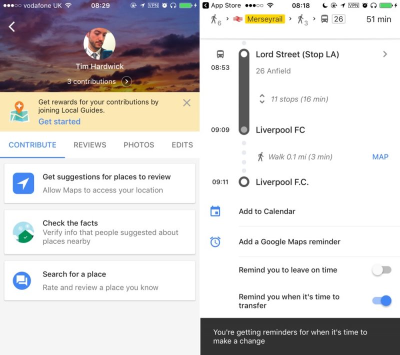 Google Maps získaly aktualizaci, díky níž získaly widget pro místní průvodce a také možnost dostat připomenutí, abyste provedli na své trase přestup. Widget „Místní průvodci“ uživatelům umožňuje navrhnout nová místa k návštěvě, komentovat stávající zajímavosti a nahrávat fotky míst.