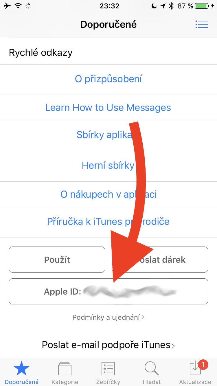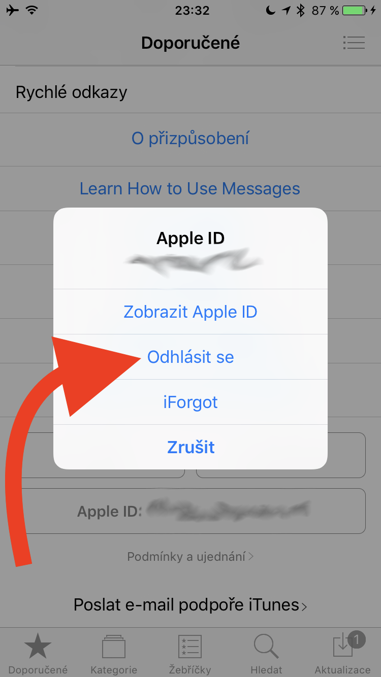 Problém může být způsoben i chybnou komunikací mezi iCloud účty vašich zařízení. Otevřete proto App Store, jděte do kategorie Doporučené. Na spodu okna naleznete své Apple ID, po kliknutí se zobrazí volba Odhlásit se. Pokud již používáte iOS 11, klikněte na profilovou ikonu svého účtu kdekoliv v App Store, kde rovněž naleznete tlačítko Odhlásit se. Odhlášení je též možné provést přes kategorii iTunes a App Store v Nastavení. Osobně se mi touto metodou vyřešila vada několikrát.