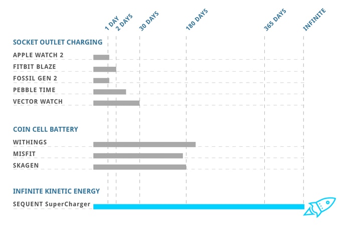Stvořitelé těchto chytrých hodinek se nechali slyšet, že při běžném pohybu vyrobí minigenerátor energii na zhruba čtyři tisíce otáček. Pokud se však bude uživatel hýbat například v rámci nějakého sportovního výkonu, výroba energie raketově vzroste. Na běžný chod však bohatě stačí běžné denní fungování.