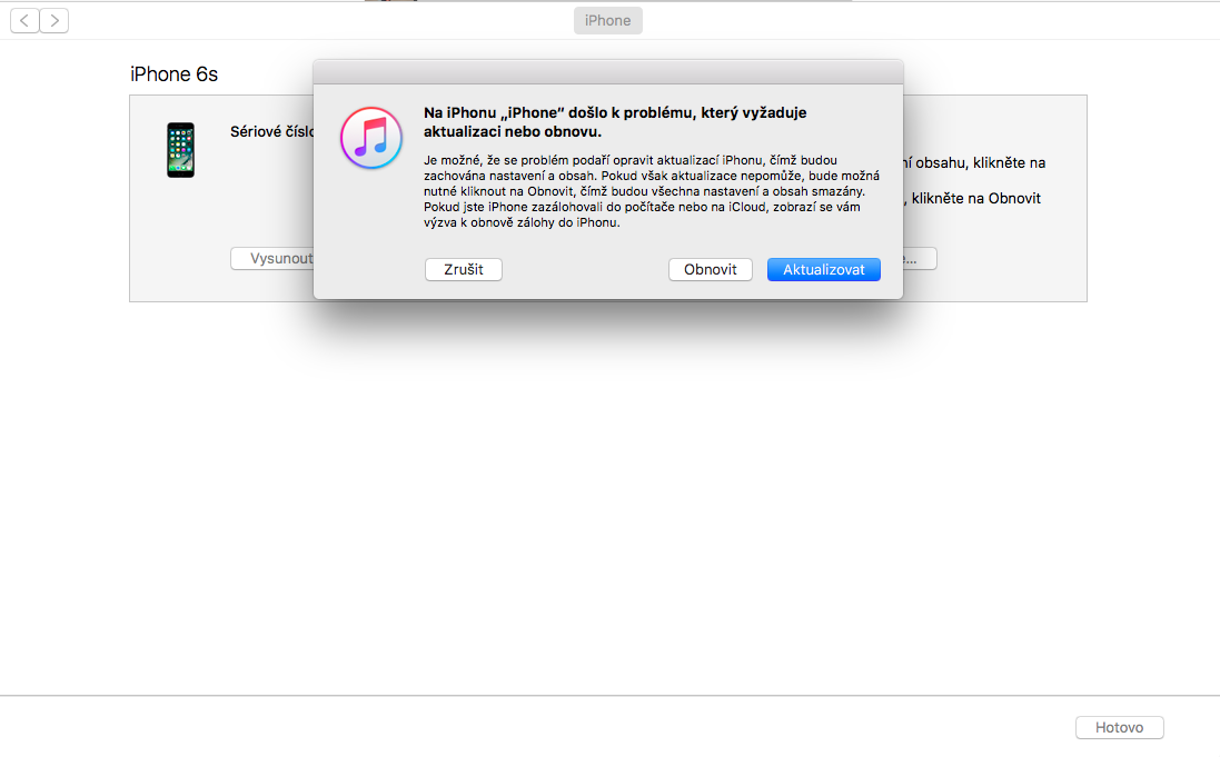 Pokud jste svůj iPhone či iPad synchronizovali s iTunes, můžete prostřednictvím této služby obnovit své zařízení. Dojde ale k vymazání dat od poslední provedené zálohy.