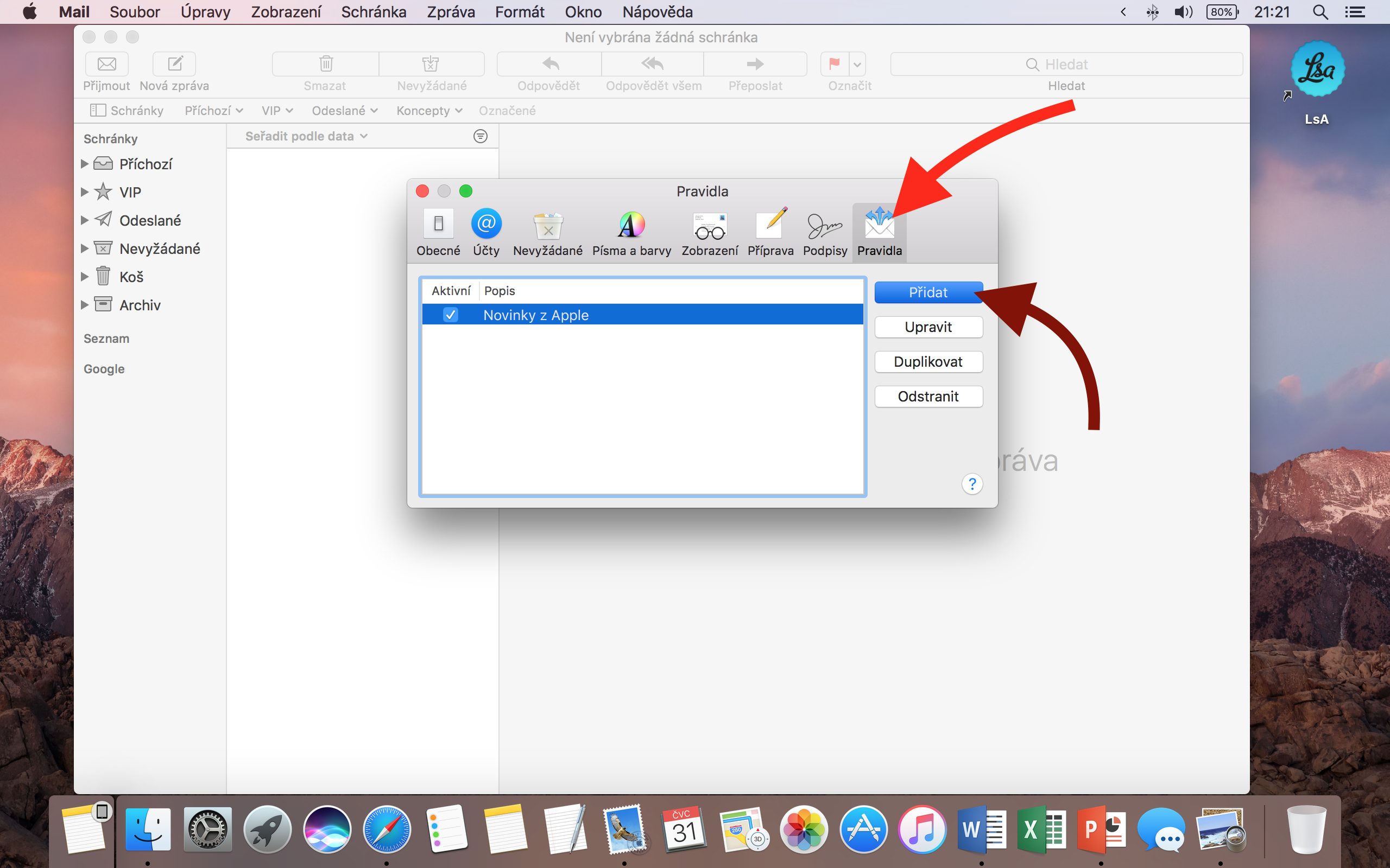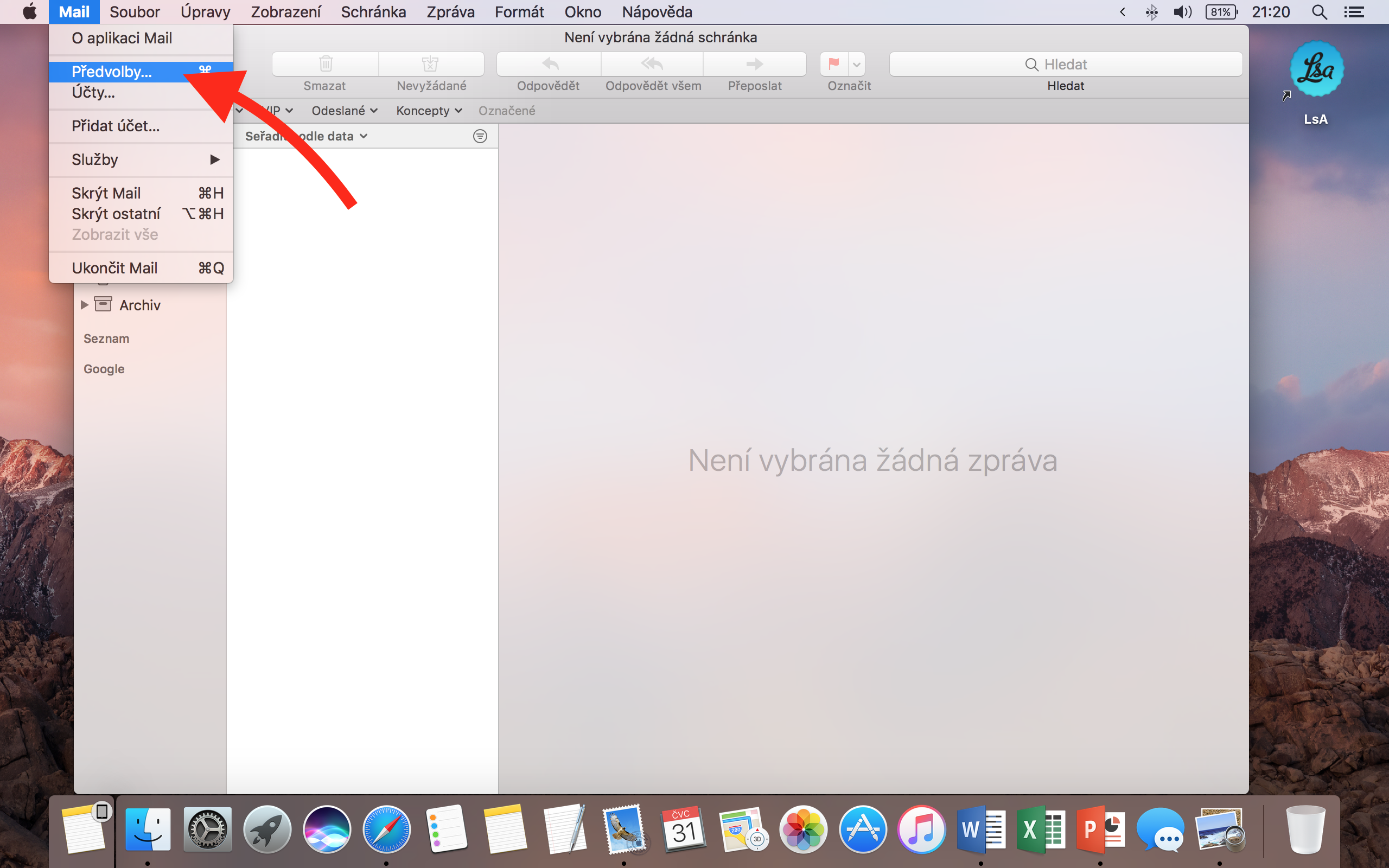 - V horní liště nabídek vyberte Mail > Předvolby.