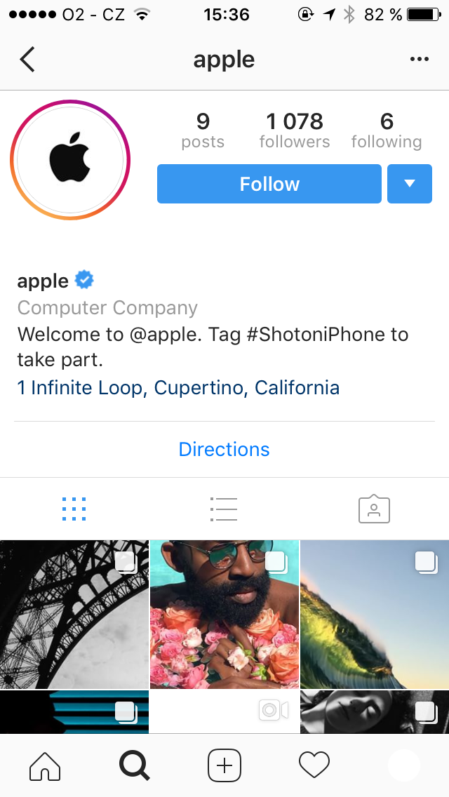 Apple již nějaký čas používá Instagram pro své reklamy. Nyní si však kalifornská společnost na populární sociální síti vytvořila svůj oficiální účet. Podle serveru Mashable bude Apple na tomto účtu sdílet fotografie z iPhonů, které pořídí přímo jejich majitelé z celého světa. Apple uvedl, že produktové galerie, reklamy či jiný marketing se na účtu nikdy neobjeví. Oddělené reklamy, které Apple již používal dříve, však pravděpodobně setrvají.