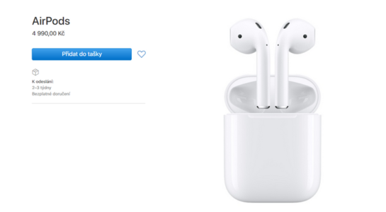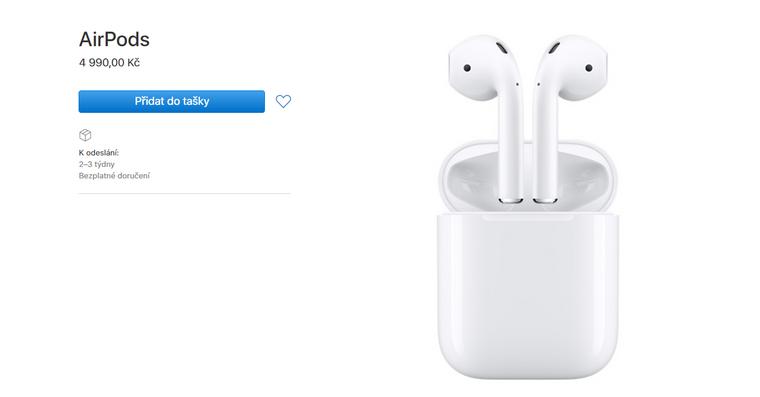 Bezdrátová sluchátka AirPods byla doposud nedostatkovým zbožím. Doba dodání ve většině zemí donedávna činila šest týdnů. Apple se však snaží zkrátit čekací dobu na minimum, což se mu perfektně daří. V online Apple Storu je uvedeno, že na sluchátka si nyní počkáte pouze dva až tři týdny. Cupertinská společnost chce totiž vyrovnat nabídku a poptávku těchto velice žádaných sluchátek.