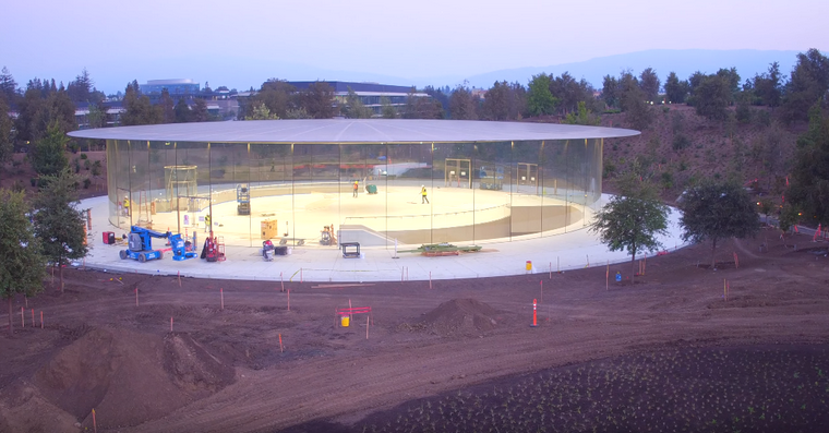 Steve Jobs Theater, kde by se měla konat i letošní keynote, je kompletní. I když v okolí divadla se ještě nachází stavební zařízení, a tak není úplně jasné, zda bude budova včas připravena pro zářijovou konferenci, na které světlo světa spatří iPhone 8.