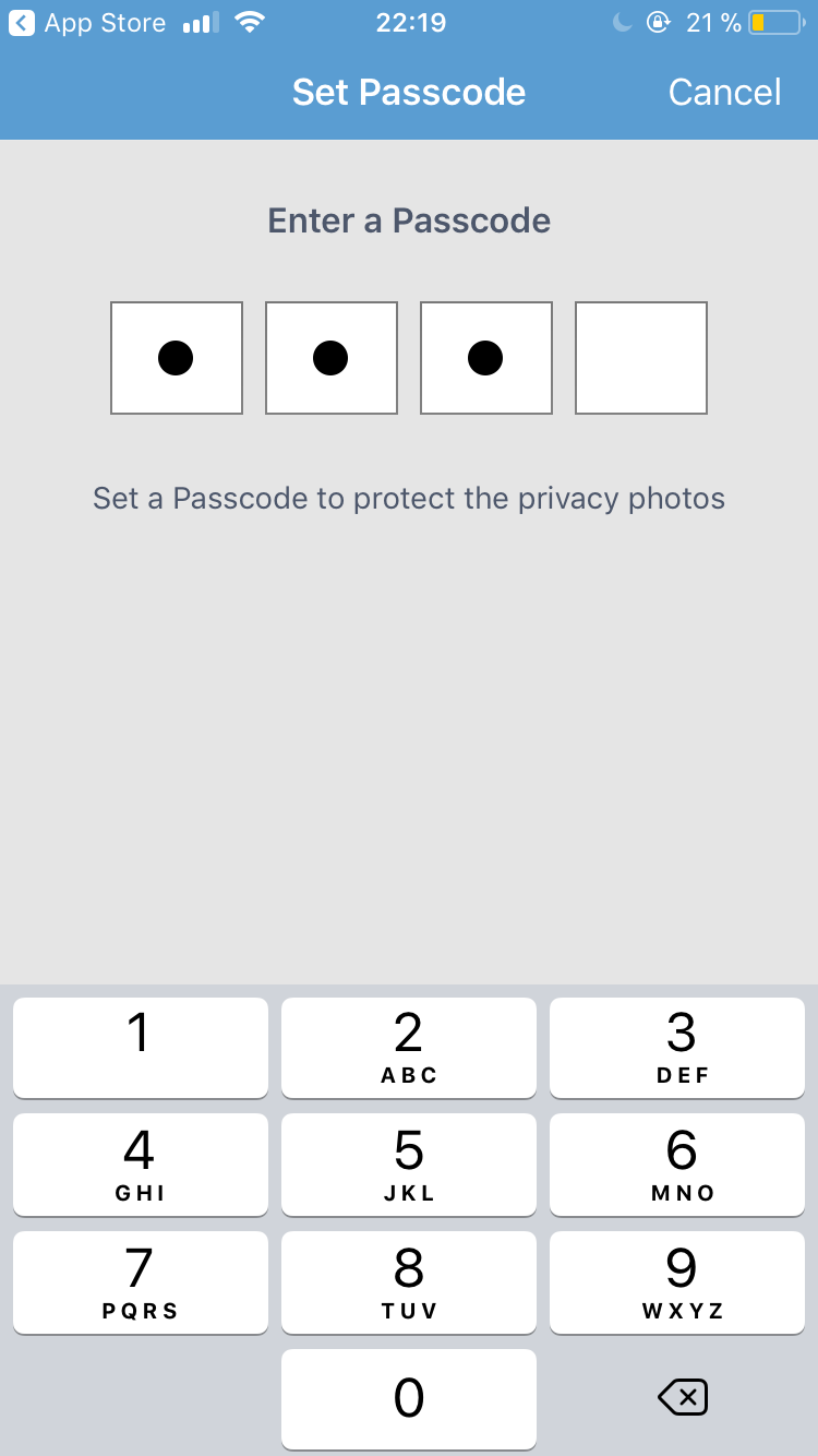Po stažení a instalaci aplikaci otevřeme. Aplikace nám nabídne nastavení hesla, toho ihned využijeme a tapneme na Set Now. Zadáme heslo, pomocí kterého se do aplikace dostaneme a poté ho potvrdíme. Na další obrazovce se nám zobrazí možnost zadat e-mail v případě, že bychom třikrát špatně zadali heslo a mohli si ho vyresetovat. Po zadání mailu se nám zobrazí podobná možnost jako v poznámkách – import fotek nebo videí a kamera. Pro tento příklad zvolím import fotek. Vybereme si opět z naší galerie fotky, potvrdíme výběr a nyní zvolíme album, do kterého chceme fotky přesunout. Buď můžeme vytvořit nové album pomocí pluska v levém horním rohu nebo fotky vložíme do přednastaveného alba – My Album. Fotky se naimportují a poté se nás aplikace zeptá, zda-li chceme smazat originální fotky. Můžeme zvolit buď první možnost – ano, v tomto případě, nebo druhou možnost – ano, vždy, a nebo třetí možnost – ne. Aplikace po nás po každém ukončení bude požadovat Touch ID nebo heslo.