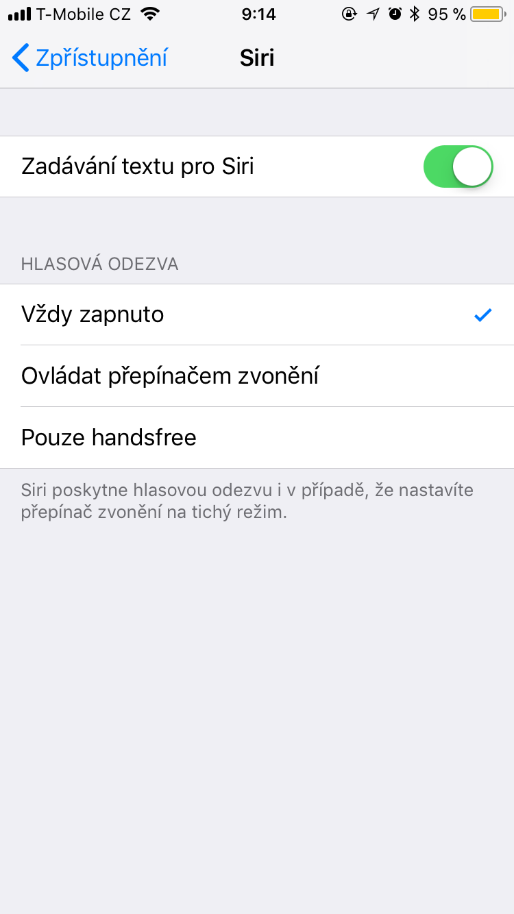 Jedním z palčivých problémů u zařízení, ovládaných hlasem, spočívá v tom, že ne vždy můžete nebo chcete svůj hlas použít. V iOS 11 máte možnost v Nastavení -> Obecné -> Zpřístupnění -> Siri aktivovat možnost „Zadávání textu pro Siri“. Když po aktivaci této možnosti stisknete dlouze Home Button, objeví se vám klávesnice, jejíž prostřednictvím můžete zadat svůj požadavek virtuální asistentce.