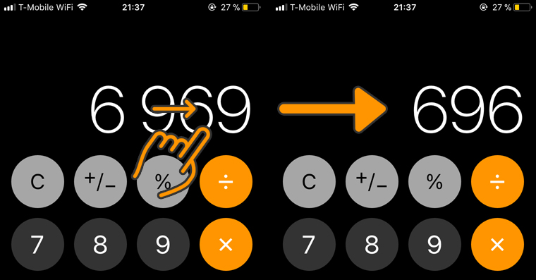 Postup je velmi jednoduchý, jakmile zadáte jakékoliv číslo, stačí přes číslo swipnout (přejet prstem) zleva doprava nebo zprava doleva. Pokaždé se smaže jen jedno číslo a ne číslo celé, jako když zmáčknete tlačítko C.