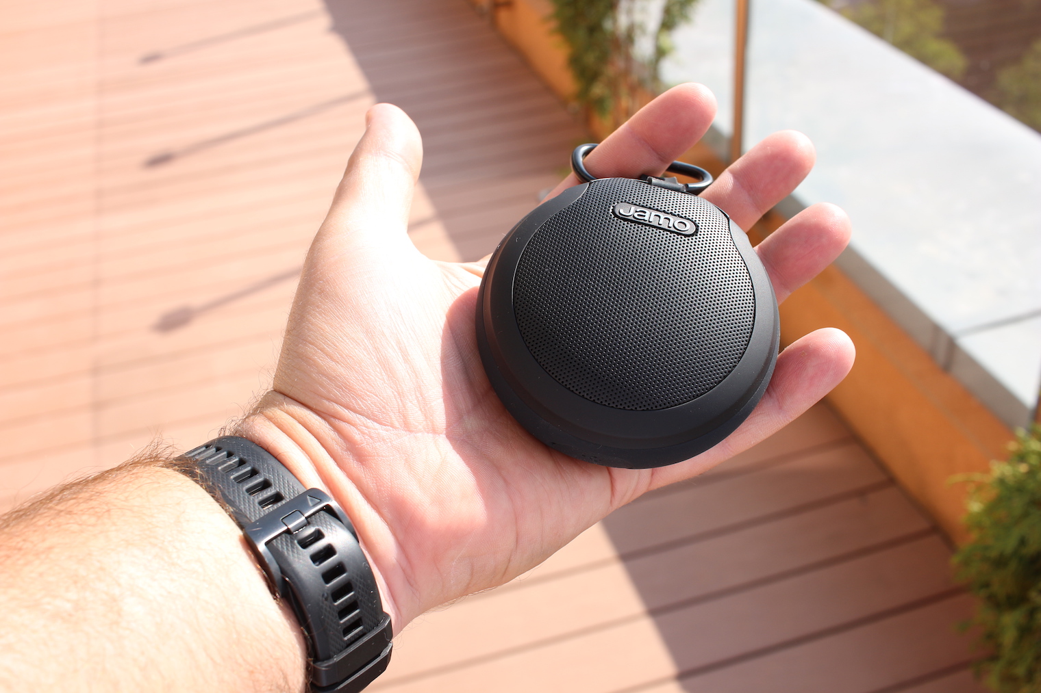 To první co vás zaujme je velikost a design, který se podobá hokejovému puku. Rozhodovat se můžete mezi černou a bílou variantou s tím, že osobně se mi černá zdá o něco elegantnější a zvláště v outdoorovém prostředí praktičtější. Celý design působí kompaktně a díky sponě si můžete reproduktor snadno připnout na batoh, do stanu nebo například za opasek. Celý reproduktor je pogumovaný s výjimkou mřížky reproduktoru, který je jak jinak než kovový. DS2 je jak odolný proti stříkající vodě a nějaký ten déšť pro něj nic moc neznamená, tak přežije i prach nebo nárazy a proto si troufám říct, že díky své konstrukci zvládne to stejné, co vydržíte i vy. Certifikace IPX5 zaručuje, že se nemusíte bát toho, že vám reproduktor spadne do sněhu, začne pršet nebo budete například na pláži kde je vlhký písek, vše totiž DS2 vydrží.