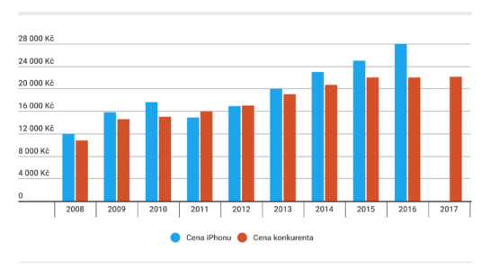 Nejmenší cenový rozdíl byl u modelu iPhone SE, který se v ČR začal v roce 2016 prodávat „jen“ o 2 874 Kč dráž než v USA. Největší cenový rozdíl byl u modelu iPhone 6S Plus, který se v ČR v roce 2015 začal prodávat o 12 424 Kč dráž než stejný model v USA.