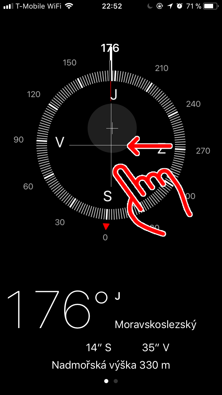 Jak jsem již napsal výše, není třeba instalovat žádnou externí aplikaci. Vodováha se nachází přímo v aplikaci Kompas. Po otevření se zobrazí kompas se všemi informacemi. Na této obrazovce stačí swipnout pomocí vašeho prstu zprava doleva. Pokud telefon položíte zády na plochu, kterou chcete měřit, zobrazí se dvě bubliny. Pokud je plocha v rovině, obrazovka se vyplní zelenou barvou. Pokud se předmět nachází výše a na displej telefonu nevidíte, můžete iPhone položit na jakoukoliv hranu. Zobrazí se druhá verze vodováhy, která má uprostřed vodící čáru. Opět, jakmile budete mít předmět v rovině, obrazovka se vybarví výraznou zelenou barvou.
