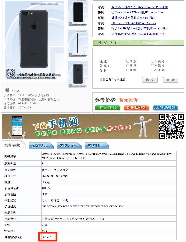 Nový iPhone 8 ve svém těle ukrývá baterii o kapacitě 1821 mAh. Větší iPhone 8 Plus pak disponuje 2675mAh baterií. Pokud jsou informace od TENAA skutečně přesné, pak mají nové telefony o něco menší kapacitu než loňské sedmičky. iPhone 7 se totiž chlubí 1960mAh baterií a iPhone 7 Plus pak baterií o kapacitě 2900 mAh.