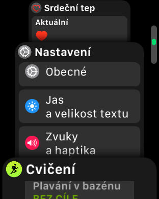 Velkého vylepšení se dočkala aplikace Cvičení, která je nyní navržena tak, abyste začali s aktivitou co nejrychleji. Aplikace prošla změnou i po grafické stránce. Nově podporuje více typů cvičení v rámci jednoho tréninku a také vysoce intenzivní intervalový trénink, kdy vám hodinky přesněji sledují pohyb i srdeční tep. Zlepšily se i funkce pro plavce, jelikož Apple Watch nově měří vzdálenost uplavanou v jednotlivých plaveckých stylech a také tempo plavání v bazénu. Lze si také nastavit, aby se během tréninků automaticky zapnul režim Nerušit nebo vybraná hudba z playlistu, přičemž hudbu je nyní možné ovládat přímo v aplikaci Cvičení.