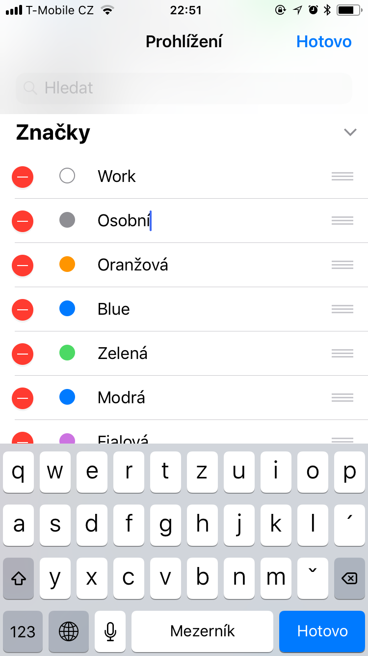 - Klepnutím na jednotlivé značky jim přiřaďte vlastní názvy.