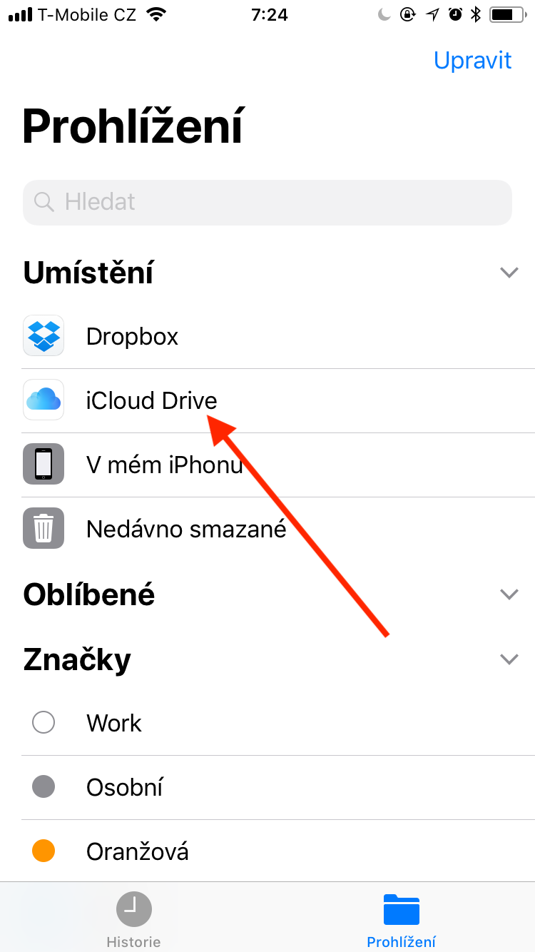 - Klepněte na „Prohlížení“ -> „iCloud Drive“.