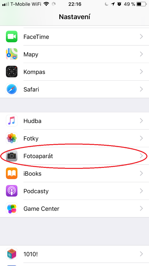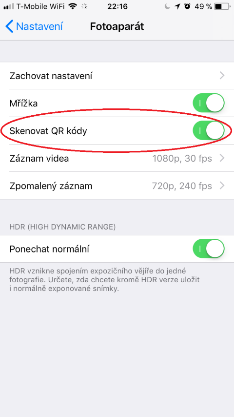 Pokud nechcete mít zapnutou tuto funkci, postupujte následovně: otevřete Nastavení a vyberte možnost Fotoaparát. Zde pomocí slideru vypněte možnost Skenovat QR kódy.