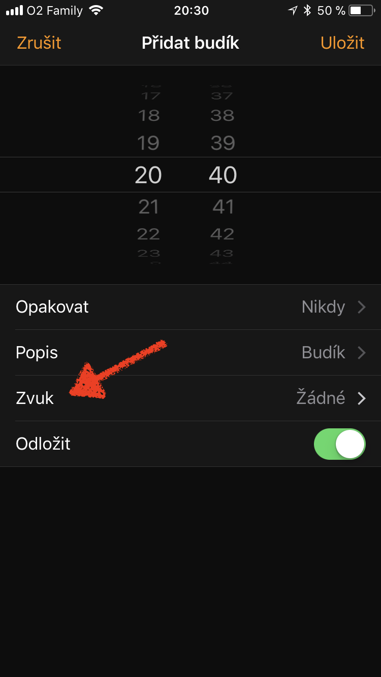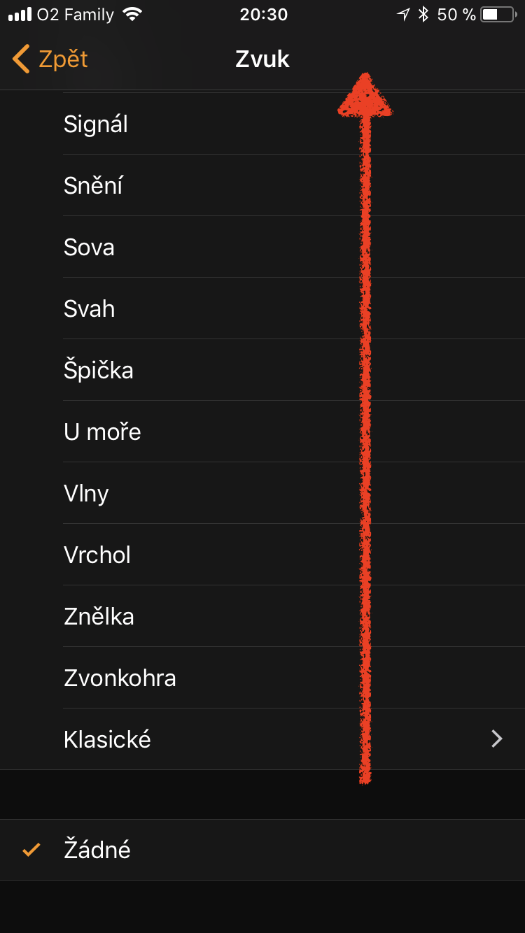 Ačkoli se vám to bude zdát trochu zvláštní, problém s absencí vibrací lze vyřešit prostřednictvím aplikace Hodiny na iPhonu. V té stačí se stačí dole přepnout na sekci Budík a zde si vytvořit nový budík, kterému je potřeba aktivovat vibrace (při vytváření budíku klikněte na Zvuk, vyjeďte úplně nahoru, zvolte Vibrace a nastavte Upozornění (Výchozí)). Nový budík nastavte tak, aby zvonil například už za 10 minut.