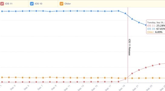 Přechod na iOS 11 je pomalejší, než tomu bylo u iOS 10. V loňském roce si totiž během jednoho týdne nainstalovalo iOS 10 více než 34 % uživatelů jablečných přístrojů.
