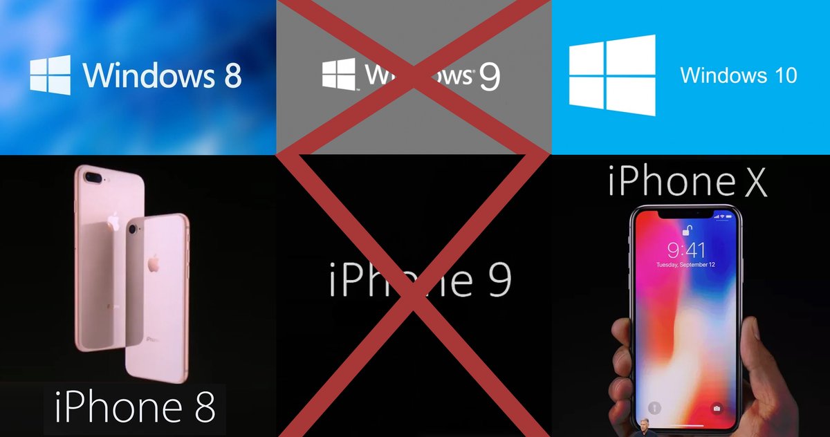 Zdá se, že se Apple redmondským gigantem tak trochu inspiroval, jelikož s iPhonem 8 představil rovnou iPhone X (čte se jako „iPhone 10“). V případě Applu je ale situace trochu jiná, protože iPhone X je model k 10. výročí jablečného telefonu a navíc Apple má ještě dost času na to, aby se s iPhonem 9 pochlubil.