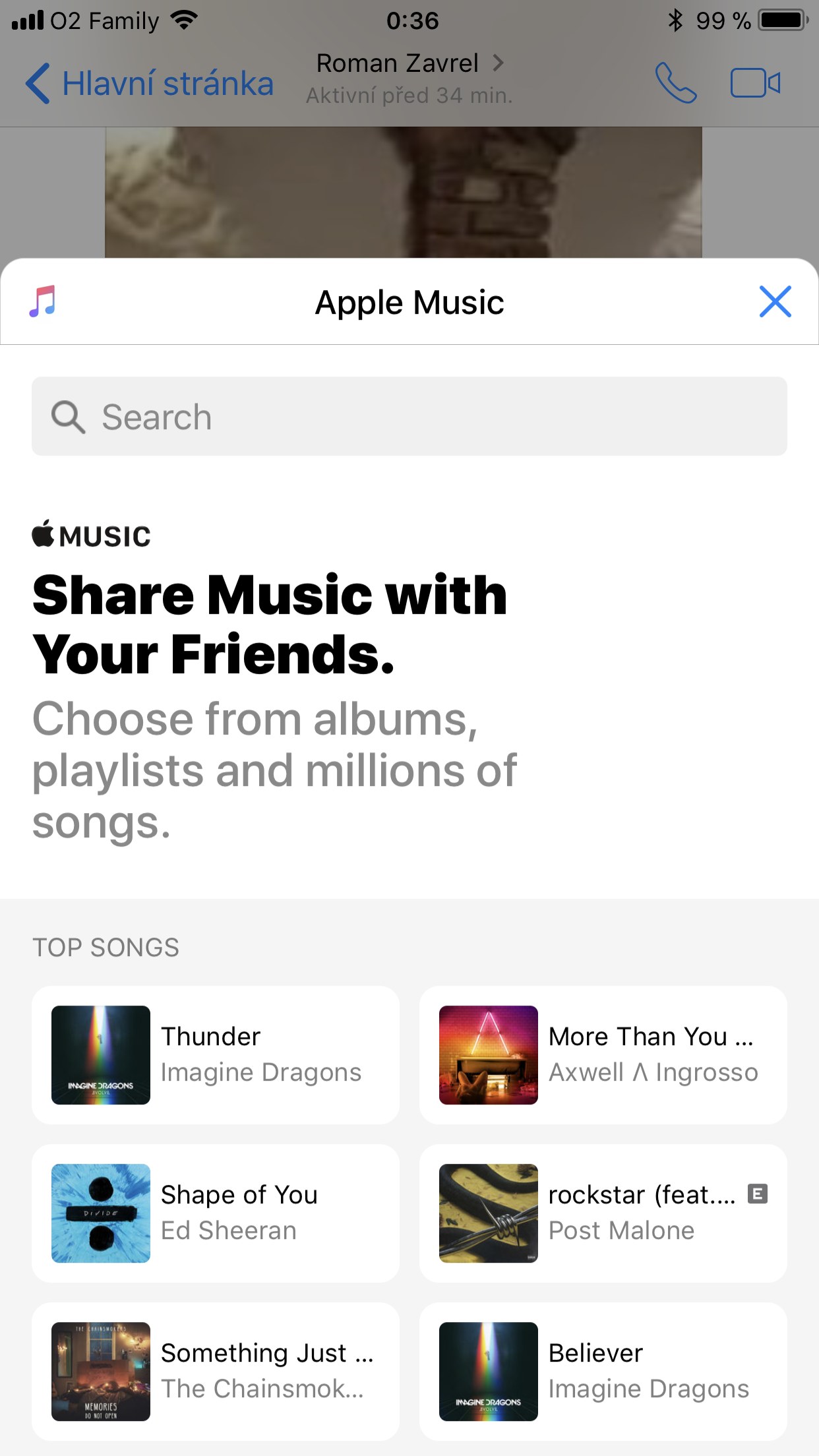 Pro streamingové služby je velice důležité, aby uživatelé hudbu sdíleli dál, a proto jsou integrovány do některých populárních komunikačních aplikací. Zatímco Spotify je v Messengeru od Facebooku už nějakou dobu, Apple Music se do populární chatovací aplikace integrovala až nyní. Díky tomu je ale nově snadné sdílet skladby (nebo jen jejich ukázky) z Apple Music přímo svým přátelům, aniž byste museli vůbec otevírat aplikaci Hudba nebo mít předplacenou Apple Music.