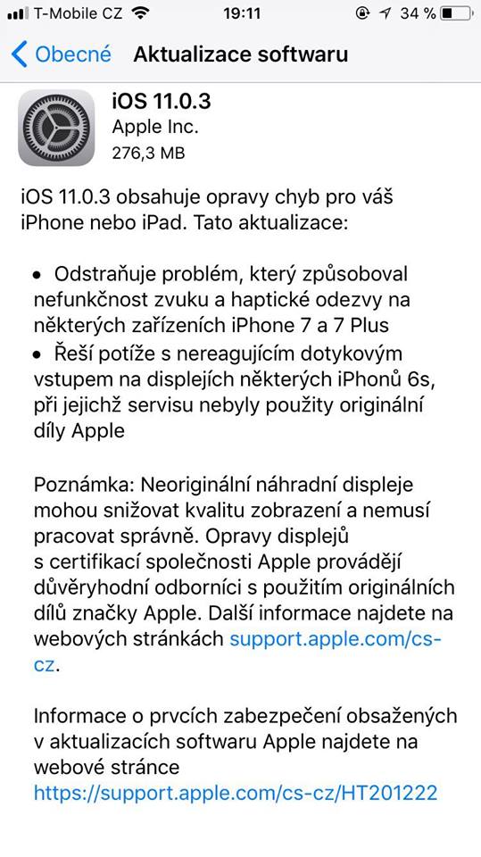 Aktualizace by měla podle slov Applu opravit problém, který způsoboval nefunkčnost zvuku a haptické odezvy na některých iPhonech 7 a 7 Plus. Vyřešen by měl být též problém s nereagujícími displeji některých iPhonů 6s, u nichž byla chybovost zapříčiněna hlavně neoriginálními díly při jejich výměně. Snad se však dočkáme i dalších oprav, mezi kterými bychom rádi viděli prodloužení životnosti baterie.