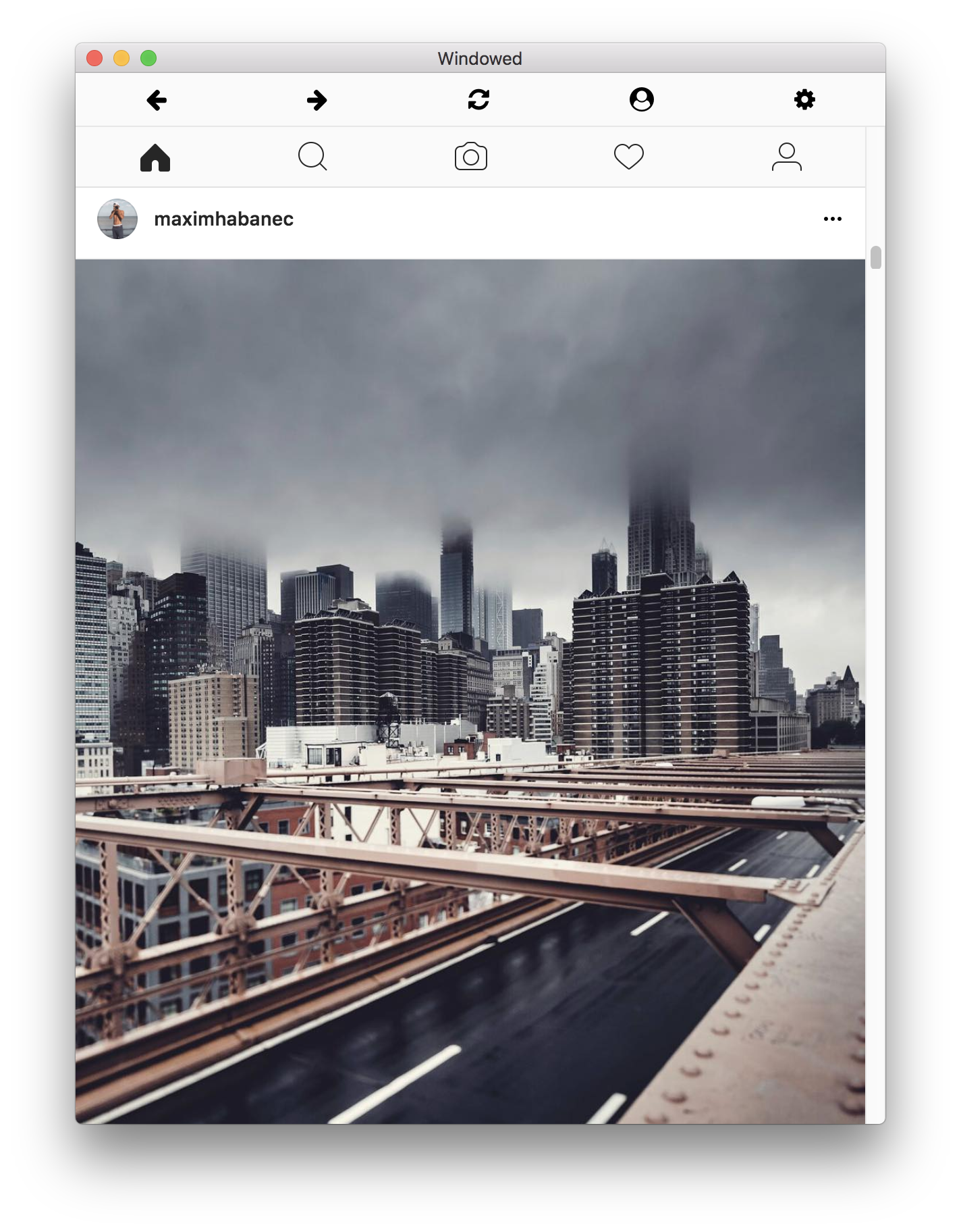 Jedná se o naprosto jednoduchý prográmek, který je zcela zdarma. Windowed je dostupný pro Windows i macOS a je skutečně intuitivní. Po nainstalování/zkopírování aplikace ji stačí otevřít, přihlásit se ke svému účtu a už můžete prohlížet fotografie podobně jako na mobilu. Stories sice dostupné nejsou, ale jistě potěší ikona fotoaparátu uprostřed horního (někdy spodního) panelu, skrze kterou lze nahrávat fotografie.