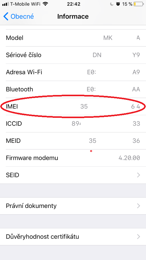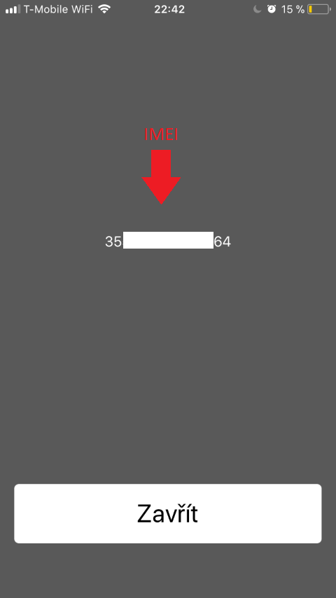 Jakmile znáte vaše IMEI, můžete postupovat následovně: