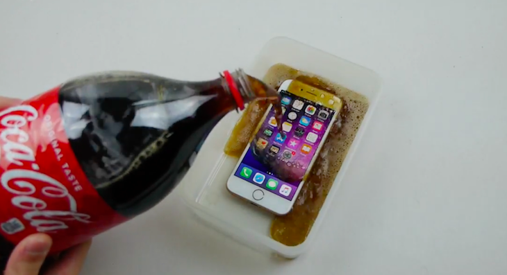 Vlogger na YouTube ponořil nový iPhone 8 na týden do Coca-Coly. Ukázalo se, že pokud byste někdy omylem pustili svůj iPhone 8 do misky plné coly a pak na něj na sedm dní zapomněli, nejspíš by fungoval pořád stejně. Díky bezdrátové nabíječce, kterou vlogger umístil pod krabici s telefonem, byl telefon celou dobu nabitý a jeho displej svítil. Na celý test se můžete podívat ve videu níže.