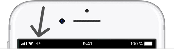 V případě, že se ve stavovém řádku objeví dvě šipky, které spolu tvoří kruh, znamená to, že probíhá synchronizace vašeho jablečného zařízení s iTunes. S tímto případem se můžete setkat například při nahrávání nové hudby nebo při zálohování zařízení.