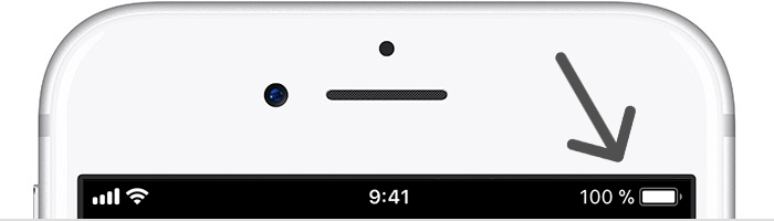 Tato ikona se nachází na stavovém řádku úplně vpravo. Mimo to, že nám udává stav baterie našeho zařízení, může mít 4 stavy. První je klasická bílá barva, která se zobrazí, pokud je baterie nabitá na 21 a více procent. V případě, že máte zapnutý Režim nízké spotřeby, zobrazí se ikona žlutě. Pokud je ikona červená, je vaše zařízení téměř vybito a má 20 a méně procent baterie. V případě, že se baterie nabíjí, změní ikona svou barvu na zelenou a navíc se vedle ní objeví malá ikona blesku.