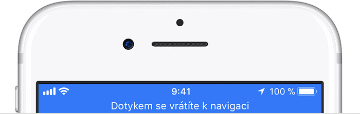 Pokud se zobrazí modrá stavová lišta s textem Dotykem se vrátíte k navigaci, znamená to, že některá z vašich aplikací (navigací) aktivně používá vaši polohu. S tímto jevem se můžete setkat například pokud máte zapnutou navigaci (Mapy od Apple nebo Google Maps) a stisknete home button.