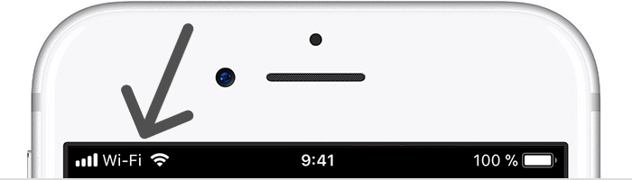 Pokud se ve stavovém řádku objeví ikona Wi-Fi, znamená to, že vaše jablečné zařízení k procházení internetu používá Wi-Fi. V případě, že se ještě objeví i text „Wi-Fi“, můžete použít telefonování skrze Wi-Fi síť.