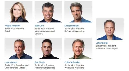Bonus v hodnotě akcií, jejichž hodnota překračuje hranici 20 milionů dolarů, obdrželi Johny Srouji, Phil Schiller, Dan Riccio, Luca Maestri, Craig Federighi, Eddy Cue a Angela Ahrendts.