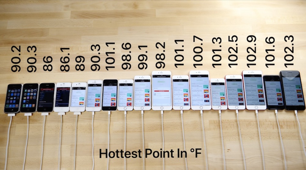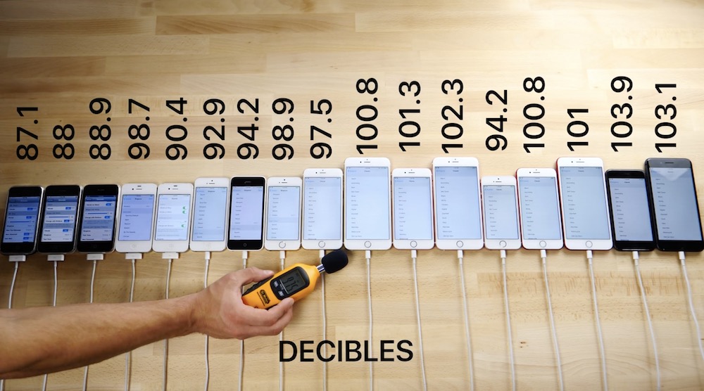 Poté přišlo na řadu měření hlasitosti reproduktorů v decibelech, kdy si výhru vysloužily opět nejnovější iPhony 8 a ani se není čemu divit, protože podle slov Applu mají mít o 25 % hlasitější reproduktory. Po tomto testu následovalo měření teploty při zátěži na každém modelu, a nakonec ještě porovnání rychlosti Touch ID na iPhonu 5s a všech novějších modelech, kdy vyhrál iPhone 8 následovaný iPhonem 7 Plus a bronz si odnesl iPhone 8 Plus.